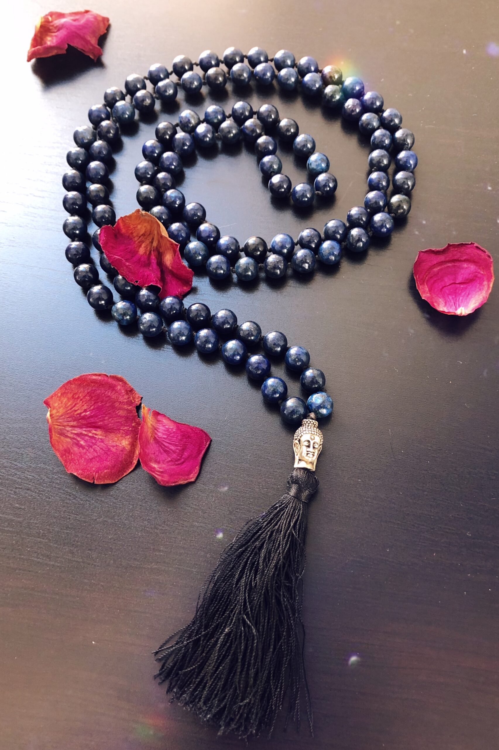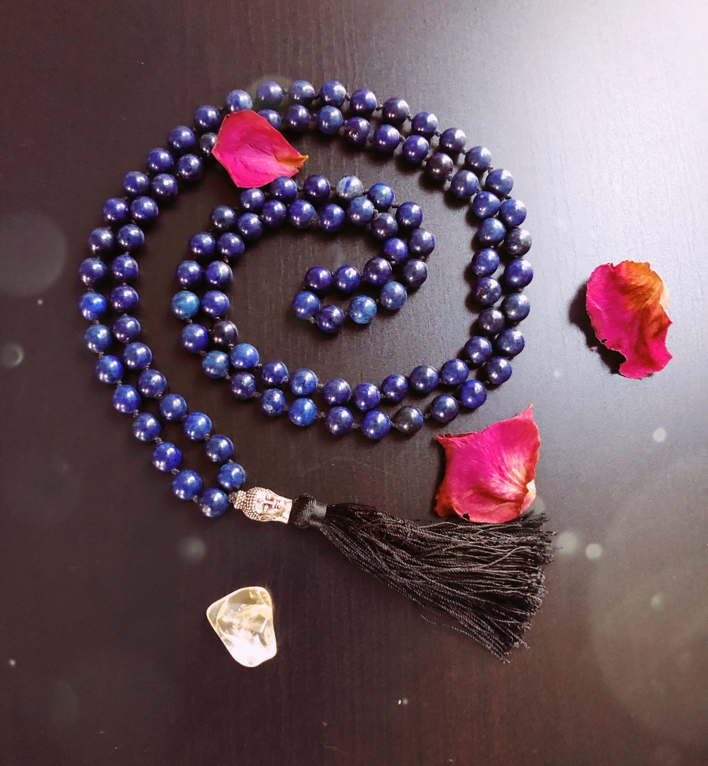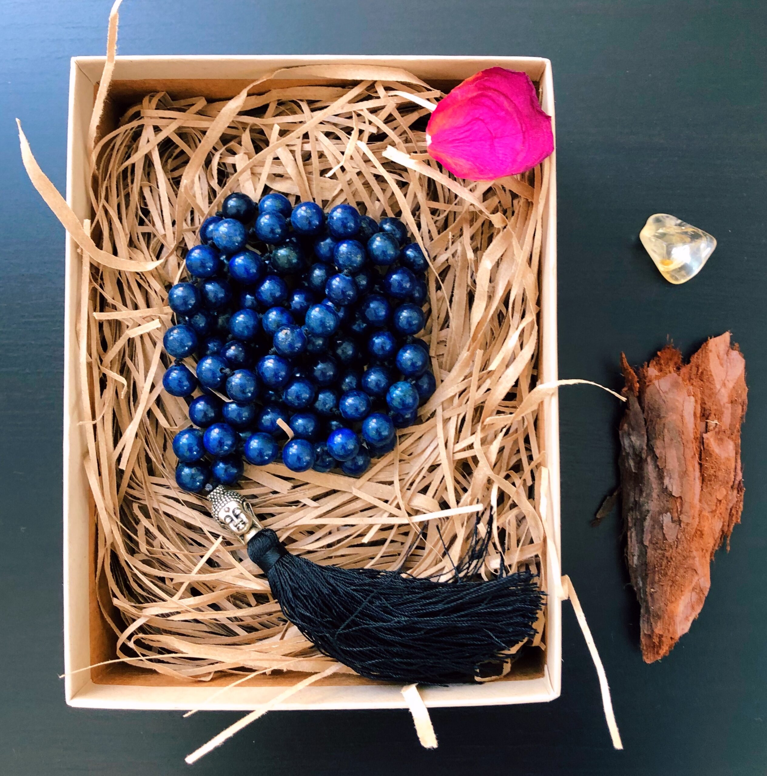 Handmade Balinese Mala beads made of Lapis Lazuli, amazing to encourage creativity and self-expression, revealing the true inner self.
